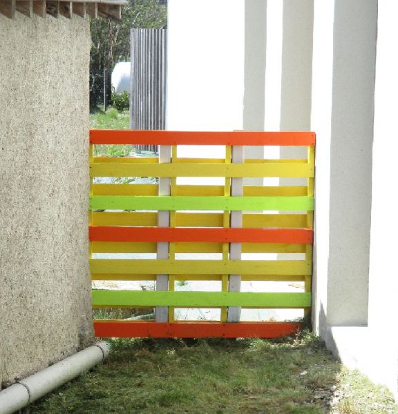 Ils ont réalisé une barrière en palette pour fermer l'espace jardinet et un salon détente pour les professionnelles.